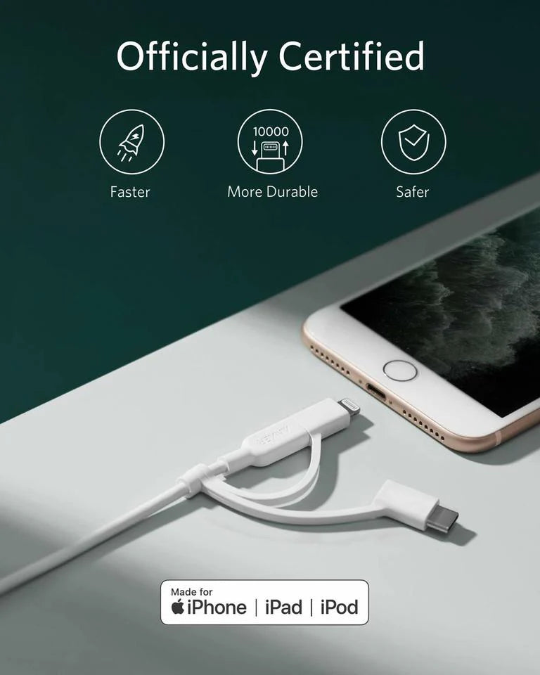 Anker 321 USB-A to Lightning Cable (3ft 3-in-1) / Anker PowerLine II 3-in-1 Cable, a hassle-free lifetime warranty and friendly customer service.