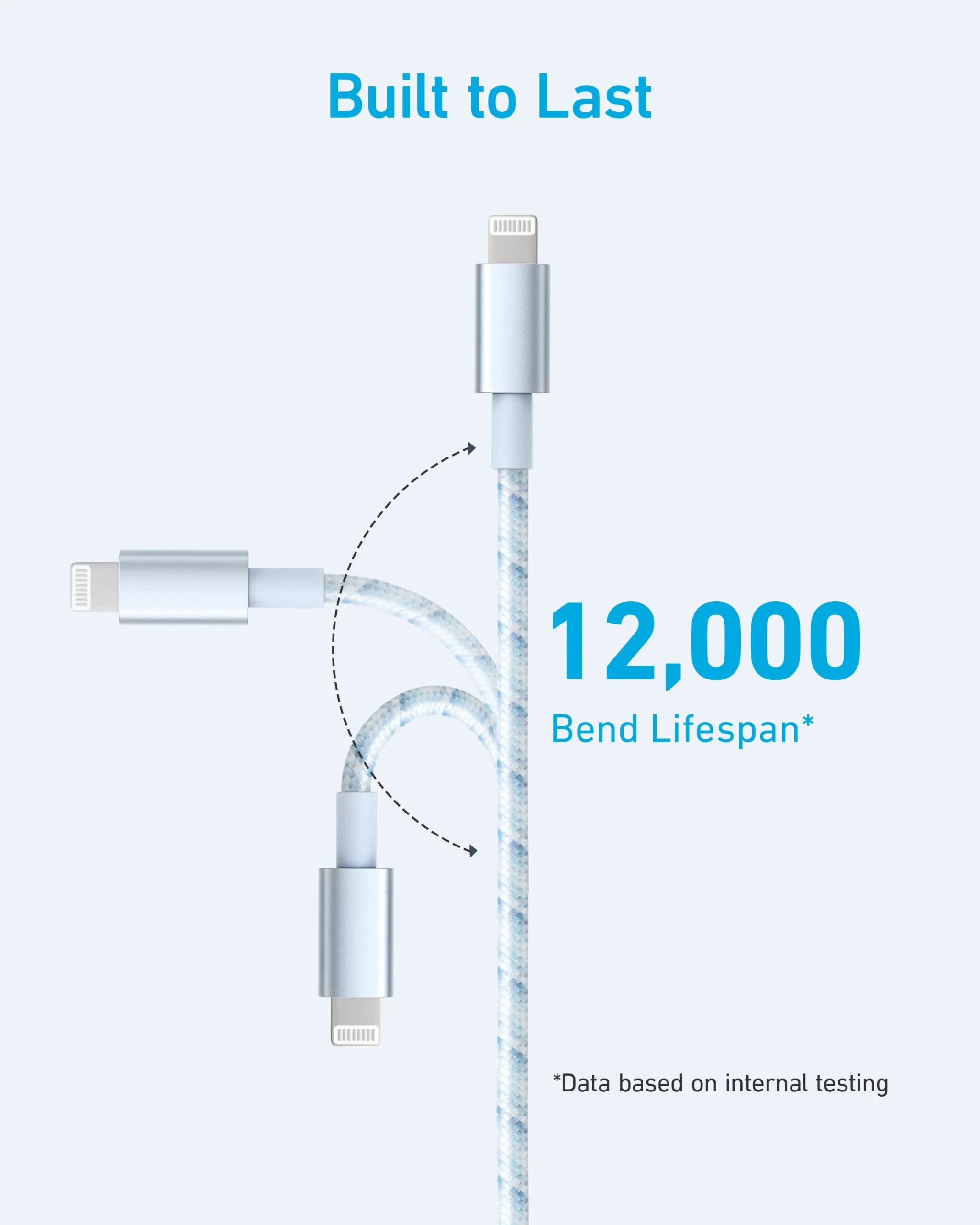 Improved construction techniques and materials make a iPhone charging cable that lasts 5X longer than the norm. Withstands 90-degree bends over 5000 times, and bears up to 88 lbs of weight.