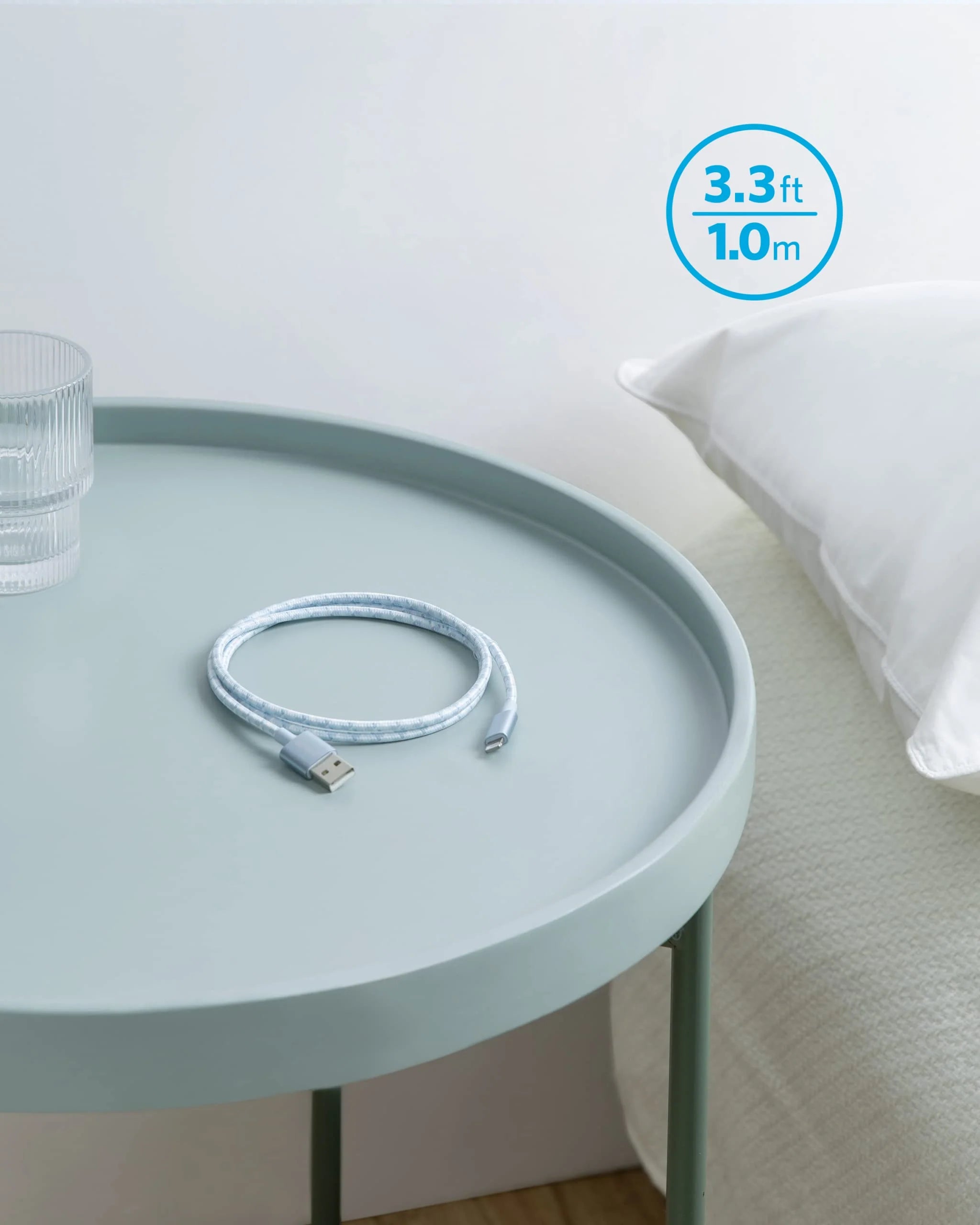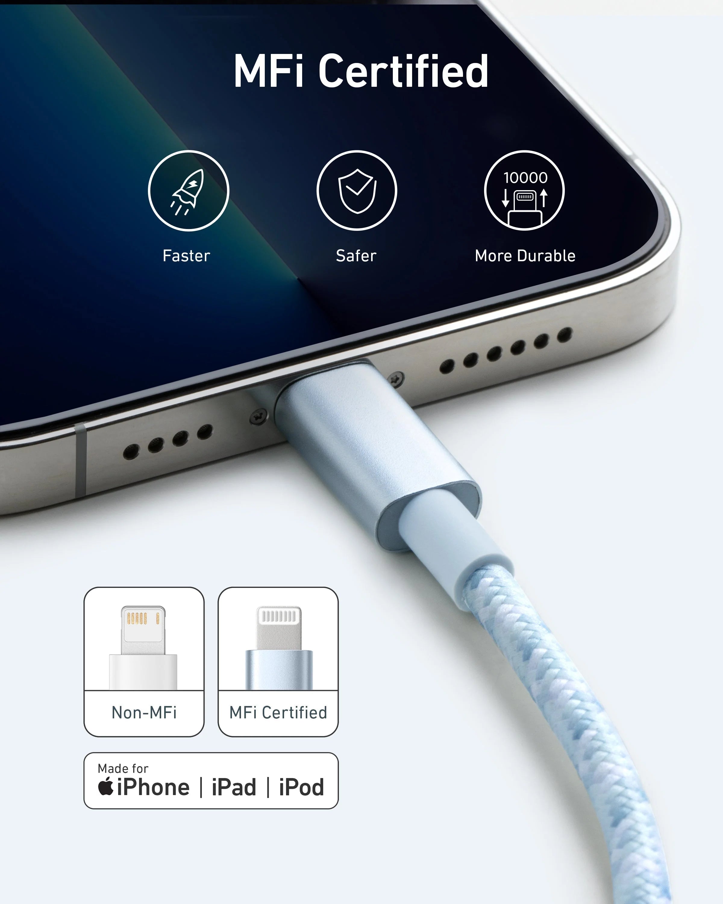 This iPhone charger cable is MFi certified and equipped with an Apple C48 Lightning plug to ensure total compatibility and high-speed charging.