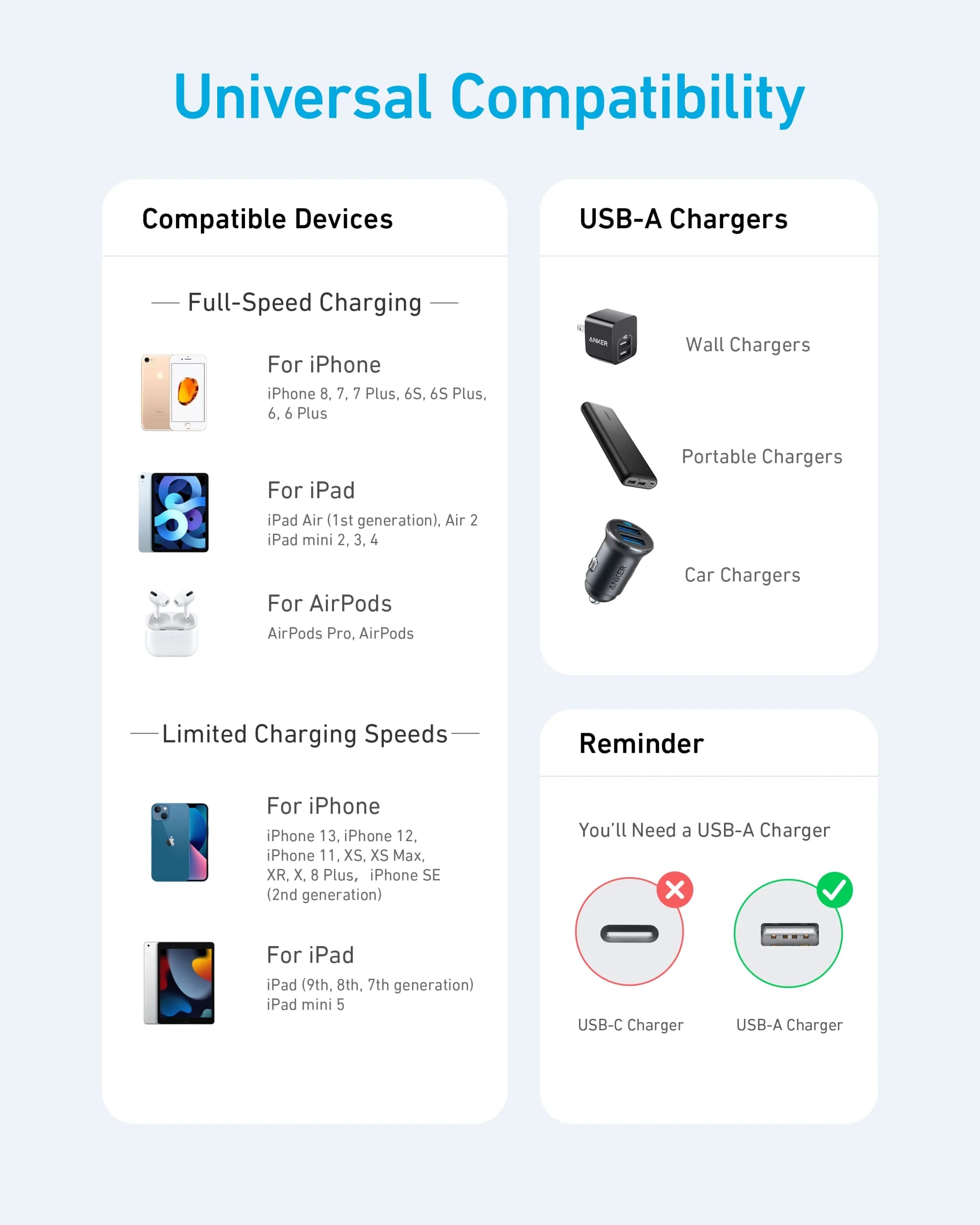 With 6 ft of iPhone charging cable, you're able to "walk and talk" on the phone, relax in bed, or charge in any position that's convenient for you.