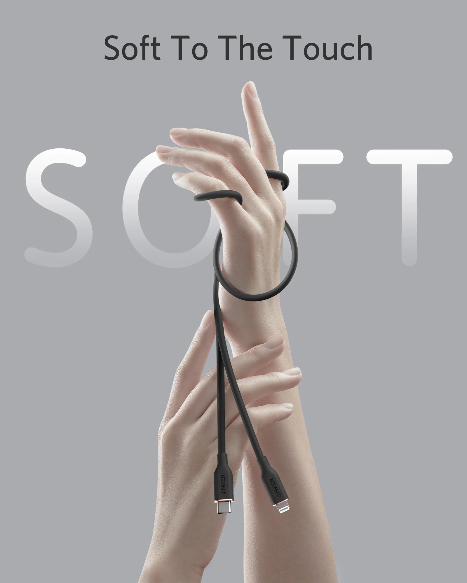 You have never felt a cable like this before. The silicone finish feels remarkably soft between your fingers as you plug PowerLine III Flow into your device.