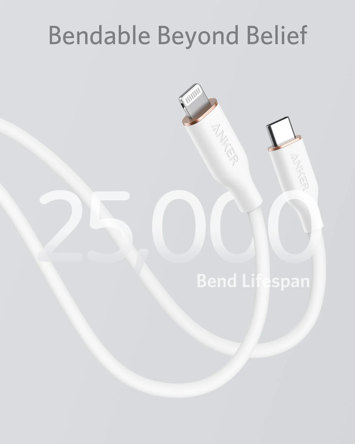 Our softest cable ever is also one of our strongest. PowerLine III Flow has a 25,000-bend lifespan, more than enough to handle the stresses and strain of charging on the go.