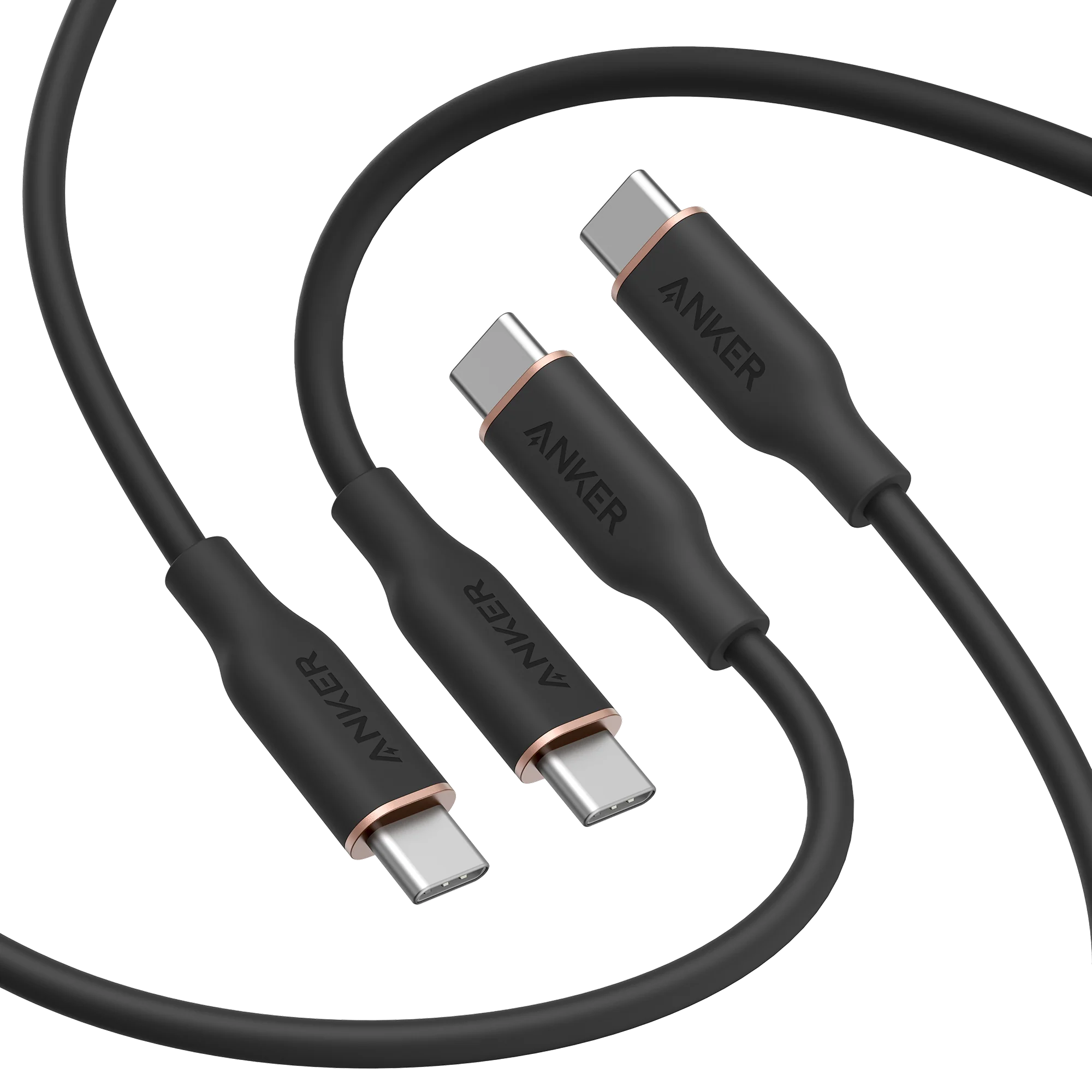 Anker 643 USB-C to USB-C Cable (Flow, Silicone,2-Pack) / PowerLine III Flow USB-C to USB-C Cable, silicone cable tie, welcome guide, our worry-free 18-month warranty, and friendly customer service.