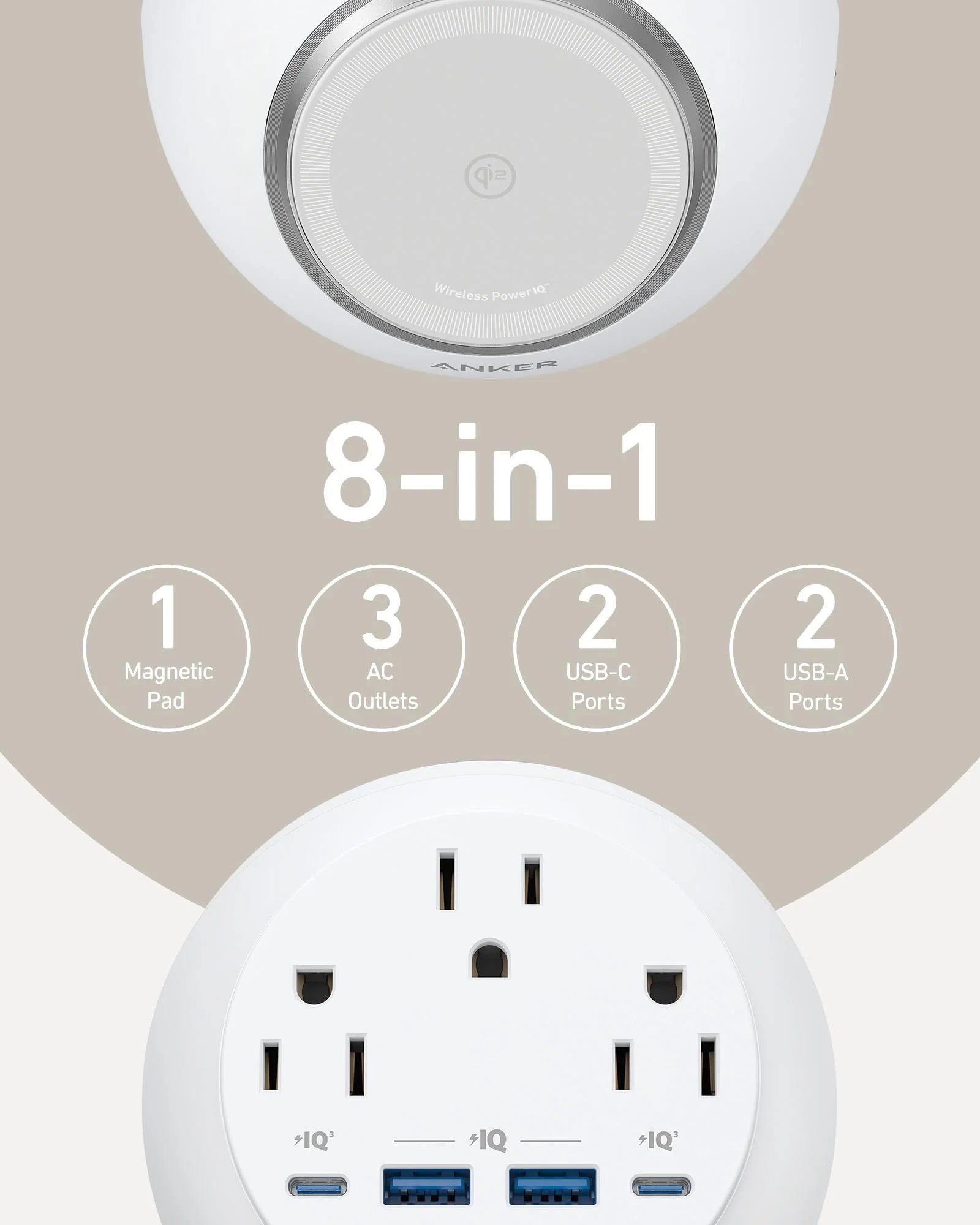 With 1 magnetic pad, 3 AC outlets, 2 USB-C, and 2 USB-A ports, experience the convenience of charging 8 devices at once, meeting all your power needs.