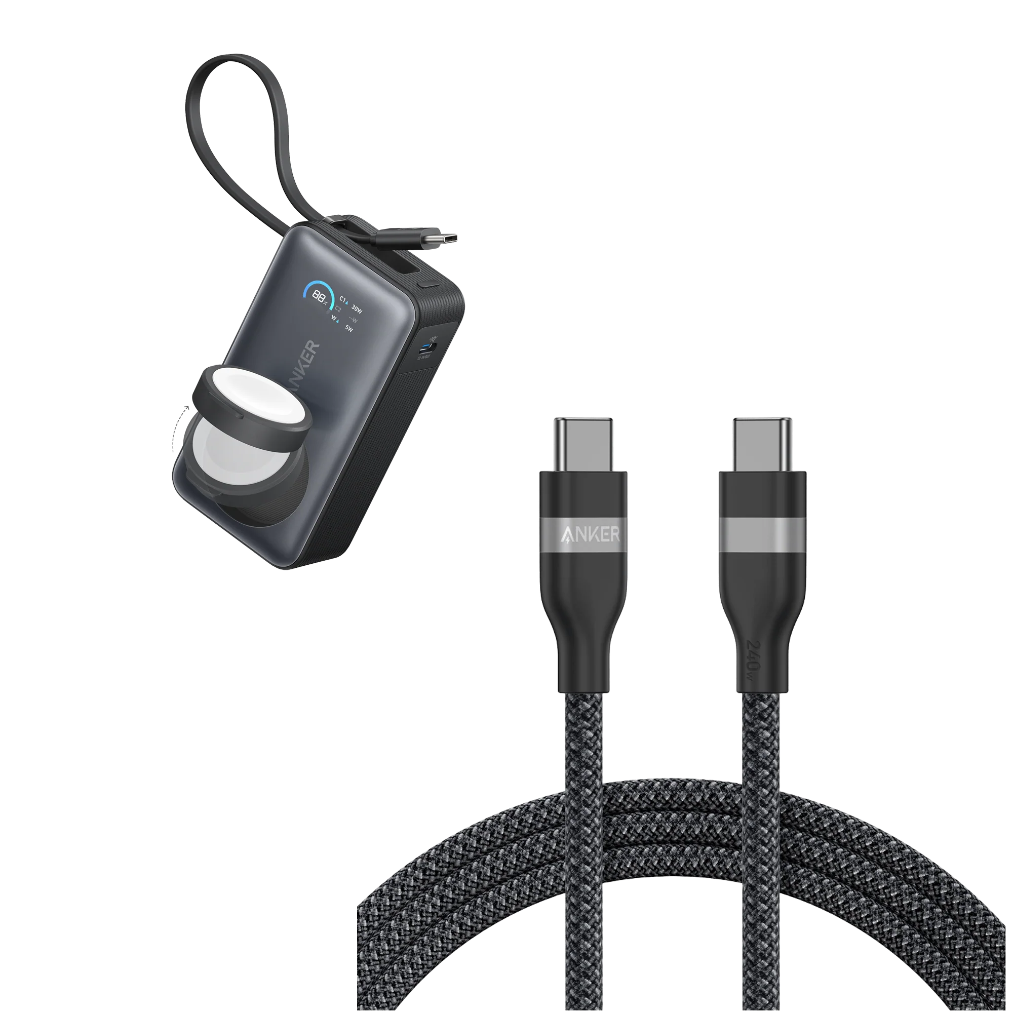 Anker MagGo Power Bank (10K, 35W, For Apple Watch), Anker USB-C to USB-C Cable (6 ft, 240W, Upcycled-Braided), welcome guide, 24-month warranty, and our friendly customer service.