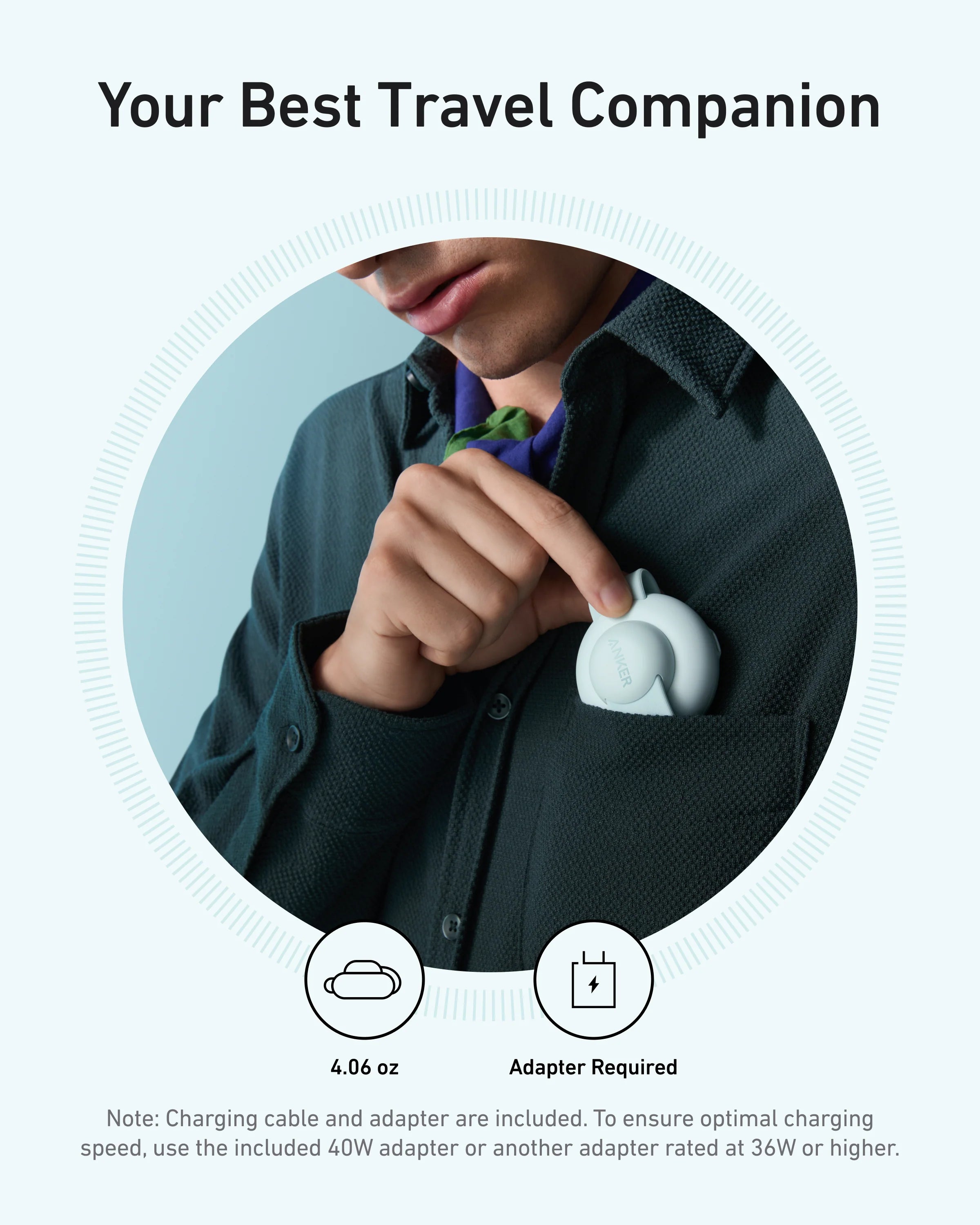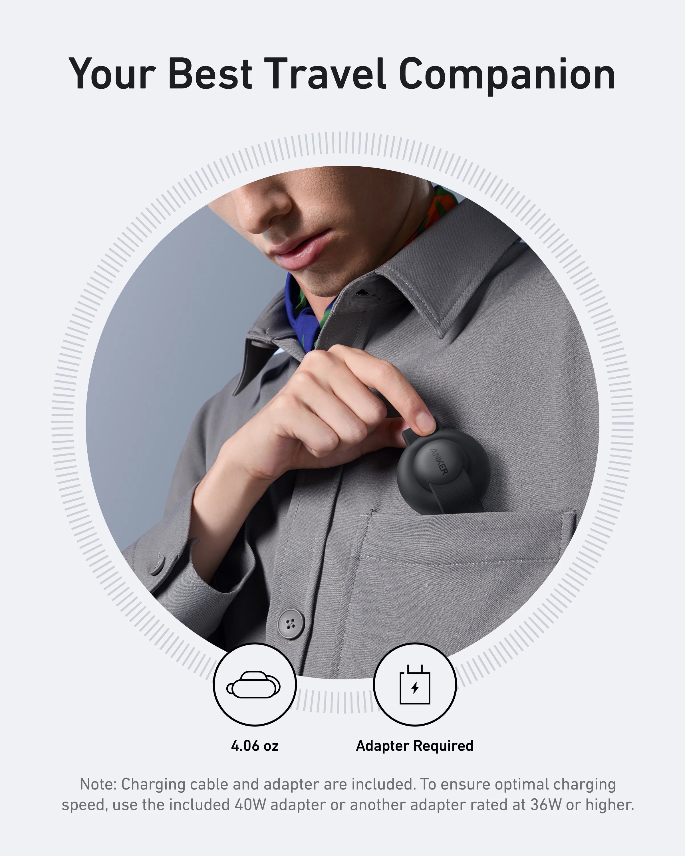 For optimal charging, use the included 40W Power Delivery adapter. If using a third-party adapter, choose one that supports an output of 36W or higher with the PD protocol to maintain adequate charging speeds.