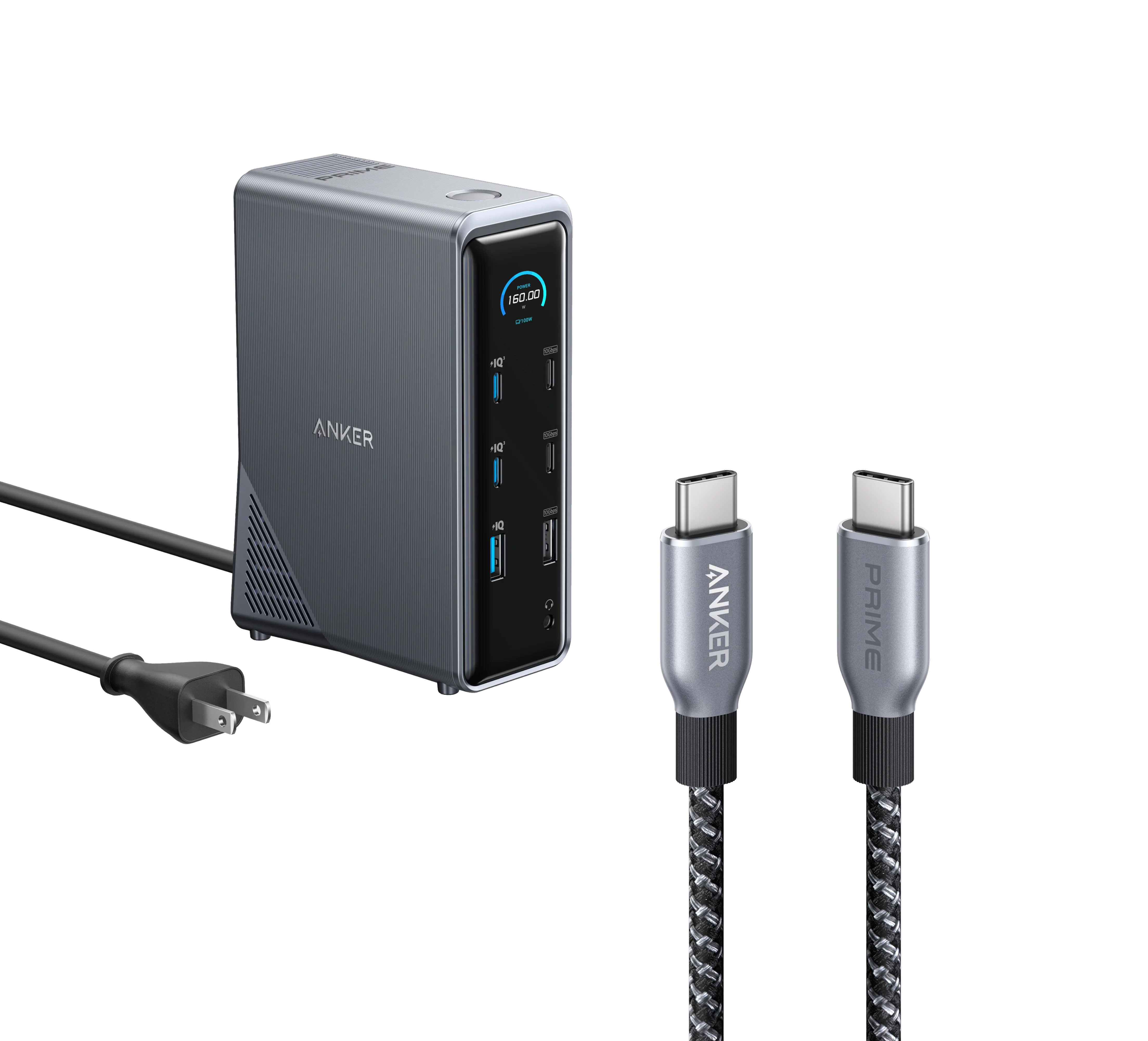 Deliver a powerful charge with 160W of total output, capable of charging up to four devices simultaneously through three USB-C ports at 100W max each and one USB-A port at 12W max.