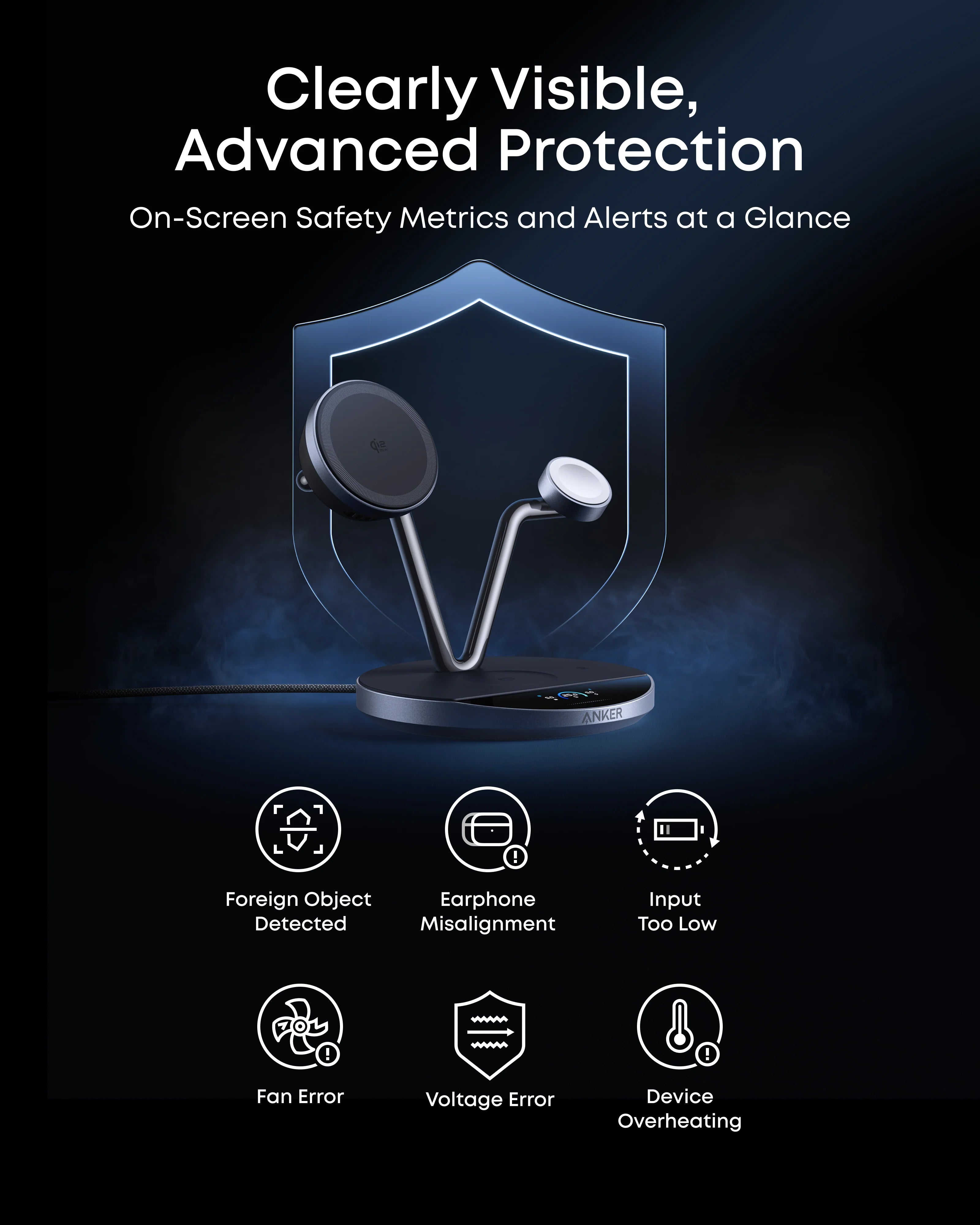 Get real-time updates on power, temperature, and charging status with the built-in 1.65" HD display. Monitor the process, customize the screen, and stay in control at all times. Instant safety alerts also appear onscreen to help protect your device.