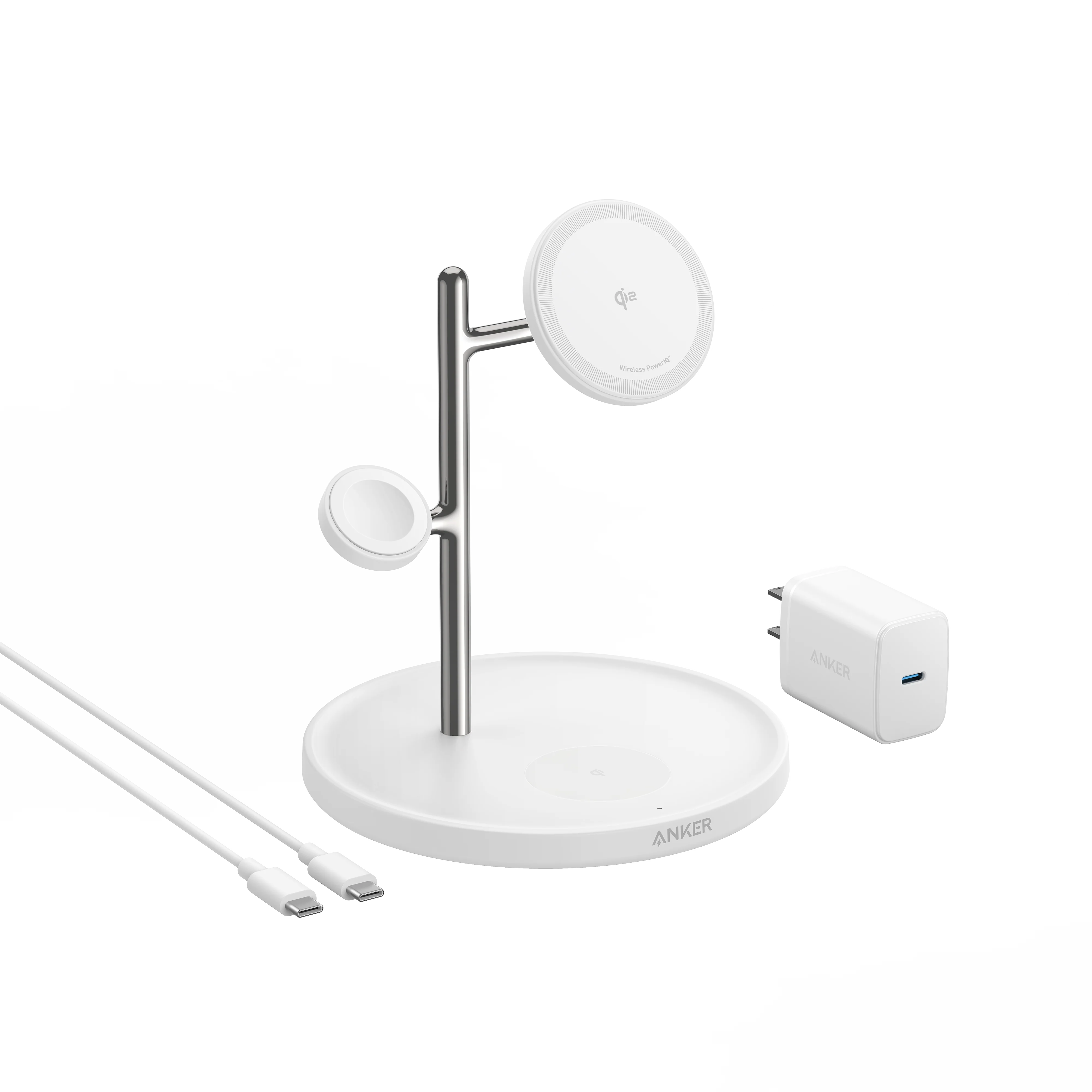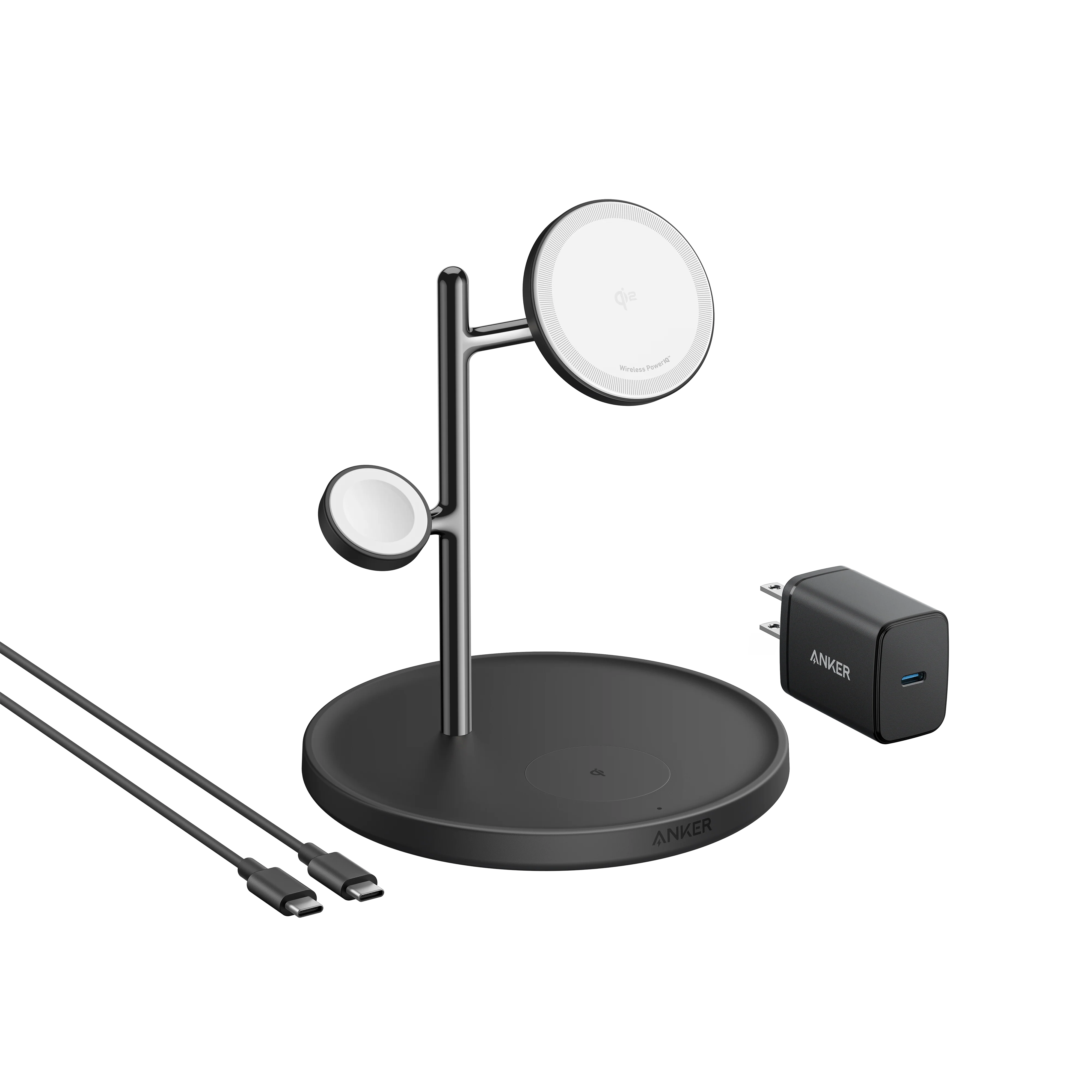 Anker MagGo Wireless Charging Station (3-in-1 Stand), 40W USB-C charger, 5 ft (1.5 m) USB-C to USB-C cable, welcome guide, 24-month warranty, and our friendly customer service.